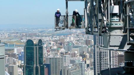 Keywords: osaka japan sky clouds men construction workers girder skyscrapers cityscape downtown urban buildings architecture skyline city cities