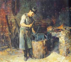 | Keywords: Oscar Pereira da Silva - O ferreiro.jpg Artwork Creator Oscar Pereira da Silva Oil on canvas cm 46 52 private collection accession number object history credit line http //www itaucultural org br/bcodeimagens/imagens_publico/002643041019 jpg PD-old-auto 1939 Oscar Pereira da Silva Paintings of men at work |