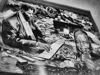 Keywords: mural montreal oscar peterson jazz blackandwhite monochrome surreal photo border black and white en.wikipedia.org/wiki/Oscar_Peterson en.wikipedia.org/wiki/Oscar_Peterson