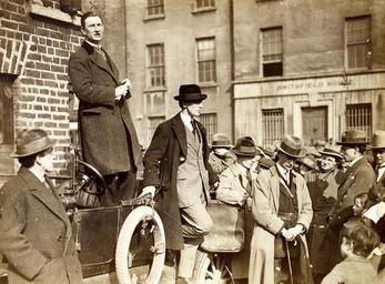 | Keywords: oscar traynor oscartraynor irish civil war irishcivilwar smithfield house smithfieldhouse ireland monday 10th july 1922 1920s twenties w.d. hogan wdhogan hogan collection hogancollection anti-treaty antitreaty smithfield dublin leinster location identified locationidentified people identified peopleidentified date established dateestablished sunday april 2nd national library of ireland nationallibraryofireland people monochrome We were originally fairly sure this photo was taken on Monday, 10 July 1922, but wanted to know a lot more about it than we did. If correctly dated, this would have been taken 5 days after Oscar Traynor's anti-Treaty fighters had been defeated around O'Connell Street in Dublin, and 17 days before he was arrested and imprisoned in Gormanston Camp... We asked if any of you could help and there was a huge effort put into correctly dating this photo. Thanks to everyone involved, but ultimately, we have to thank Siulach who commented: "According to the Irish Independent, April 3, 1922, the Dublin City Brigade I.R.A. paraded at Smithfield on the 2nd "under officers who recognise the Executive established as a result of the recent Convention", and were addressed by Oscar Traynor, Rory O'Connor and F[rank] Henderson." The dating of this photo is particularly useful to us, because it allows us to accurately date other W.D. Hogan photos taken at this spot on Sunday, 2 April 1922! And also allows us add the Holy Trinity of tags: Location Identified; People Identified; Date Established... Date: Sunday, 2 April 1922 NLI Ref.: HOG228 We were originally fairly sure this photo was taken on Monday, 10 July 1922, but wanted to know a lot more about it than we did. If correctly dated, this would have been taken 5 days after Oscar Traynor's anti-Treaty fighters had been defeated around O'Connell Street in Dublin, and 17 days before he was arrested and imprisoned in Gormanston Camp... We asked if any of you could help and there was a huge effort put into correctly dating this photo. Thanks to everyone involved, but ultimately, we have to thank Siulach who commented: "According to the Irish Independent, April 3, 1922, the Dublin City Brigade I.R.A. paraded at Smithfield on the 2nd "under officers who recognise the Executive established as a result of the recent Convention", and were addressed by Oscar Traynor, Rory O'Connor and F[rank] Henderson." The dating of this photo is particularly useful to us, because it allows us to accurately date other W.D. Hogan photos taken at this spot on Sunday, 2 April 1922! And also allows us add the Holy Trinity of tags: Location Identified; People Identified; Date Established... Date: Sunday, 2 April 1922 NLI Ref.: HOG228 |