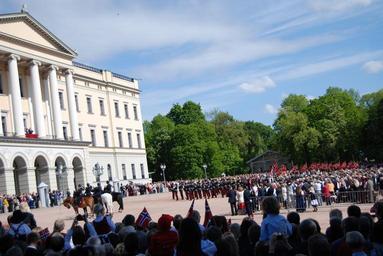 Keywords: Oslo 17 maj 2009.JPG pl Oslo parada przed zamkiem królewskim 17 maja 2009 own Maxxii 2009-05-17 Royal Palace Oslo Norwegian Constitution Day in Oslo Slottsplassen Oslo 2009 in Oslo Mounted police in Norway
