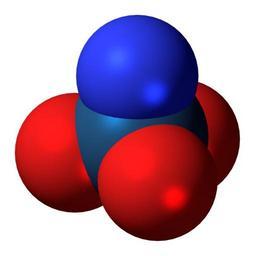 | Keywords: OsNO3 3D spacefill.png Space-filling model of the Metal nitrido complex anion with the forumla OsNO3<sup>-</sup> Colour code F51E1E Oxygen O red<br> 3C50FA Nitrogen N blue<br> 206890 Osmium Os dark blue<br> 2011-07-03 own DS Visualizer Jynto talk Ball-and-stick version cc-zero Images by Jynto Osmium complexes oxido complexes nitrido complexes complex anions |