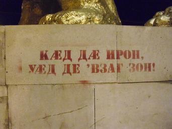 Keywords: Ossetian.JPG Ossetic graffiti in Vladikavkaz Г аффити на осетинском языке во Владикавказе «Если ты осетин знай свой язык» own 2009-01-13 Alfredovic own work Vladikavkaz Ossetian language