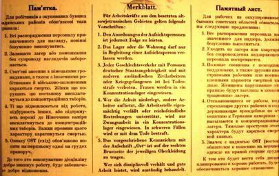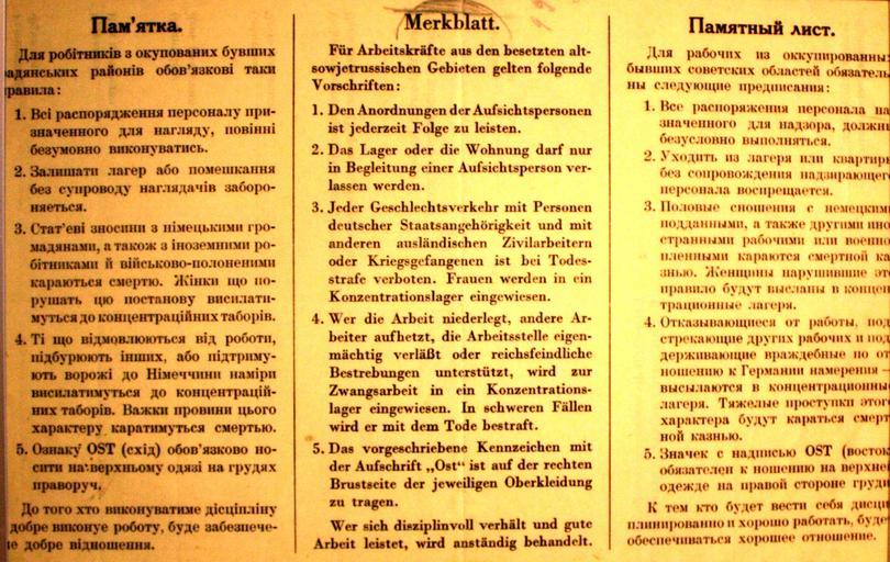 Keywords: Ostarbeitermerkblatt.jpg de Merkblatt für Ostarbeiter aus der Sowjetunion Quelle DB Museum Nürnberg Picture Bild-CC-by-sa/3 0/de by THomas Kees Powerbiker1 Памятка оста байте у Выдавалась немецким командованием на местах аботы остав аубет ам из Ук СС и РСФСР German wikipedia de File Ostarbeitermerkblatt jpg author 1942 Bild-CC-by-sa/3 0/de PD-Ukraine 1940s original upload log page de wikipedia Ostarbeitermerkblatt jpg 2008-12-15 21 01 Powerbiker1 3252×2152× 602408 bytes <nowiki> Andere Versionen </nowiki> Ukraine in World War II Ostarbeiter 1942 texts |