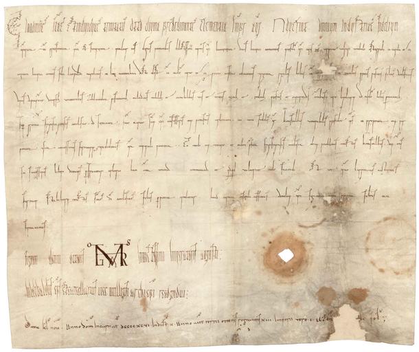 | Keywords: Ostarrichi 1 1.jpg Urkunde von Ostarrichi von Otto III 996 Document written by Otto III in the year 996 The document concerns a donation of the territory which is known in the vernacular as Ostarrichi regione vulgari vocabulo Ostarrichi specified as the region of Neuhofen an der Ybbs in loco Niuuanhova dicto A transcript in Latin follows with the source linked below it In nomine sanctae et individuae trinitatis Otto divina preordinante clementia imperator augustus Noverint omnium industriae fidelium nostrorum tam praesentium quam et futororum qualiter nos dignis petitionibus dilectissimi nepotis nostri Baioariorum ducis Heinrici annuentes quasdam nostri iuris res regione vulgari vocabulo Ostarrichi in marcha et in comitatu Heinrici comitis filii Liutpaldi marchionis in loco Niuuanhova dicto id est cum eadem curte et in proximo confinio adiacentes triginta regales hobas cum terris cultis et incultis pratis pascuis silvis aedificiis aquis aquarumve decursibus venationibus zidalweidun piscationibus molendinis mobilibus viis en inviis exitibus et reditibus quesitis et inquirendis omnibusque iure legaliterque ad easdem hobas pertinentibus super gremium Frigisingensis aecclesiae ad servicium sanctae Mariae sanctique Christi confessoris atque pontificis Corbiniani cui nunc fidelis noster Kotascalus venerabilis presidet episcopus in proprium atque perpetuum usum concessimus firmiterque tradidimus nostra imperiali potentia eo modo eoque tenore ut eadem praefata Frigisingensis aecclesia idemque praelibatus antistes Kotascalhus atque omnes sui successores libero deinceps perfruantur arbitrio haec omnia tenendi commutandi et quidquid voluerint inde faciendi Et ut nostrae largitionis auctoritas firmior stabiliorque cunctis sanctae dei aecclesiae filiis perpetim credatur hanc cartam inscribi iussimus anuloque nostro signatam manu propria subtus eam firmavimus Signum domni Ottonis invictissimi imperatoris augusti Hildibaldus episcopus et cancellarius vice Uuilligisi archiepiscopi recognovi Data kal nov anno dominicae incarnationis DCCCCXCVI indictione X anno autem tertii Ottonis regnantis XIII imperii vero I; actum Bruochselle feliciter cite web http //www noe gv at/Land-Zukunft/Geschichte-Landeskunde/Landessymbole/Ostarrichi-Urkunde print html Der Landesname Die Ostarrîchi-Urkunde http //www altertuemliches at/termine/ausstellung/verbuendet- E2 80 93-verfeindet- E2 80 93-verschwaegert-23472 > http //www altertuemliches at/files/datei_1_1 jpg JPG 996 Otto III PD-old-100 Ostarrichi charter |