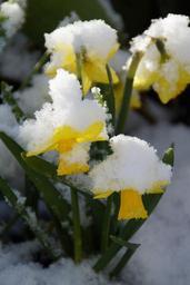 Keywords: osterglocken daffodils snowy snow winter blast april yellow spring flower bloom plant narcissus pseudonarcissus end of winter weather april weather