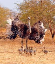 Keywords: ostrich bird clutch small chicks family animal