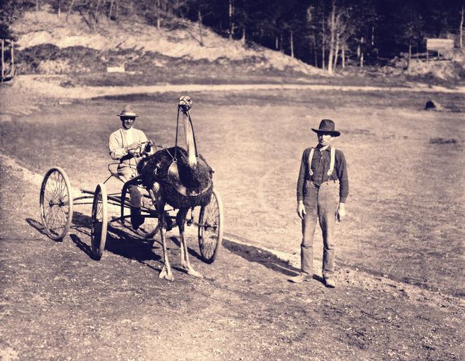 Keywords: ostrich racing harness race funny humor animal vintage