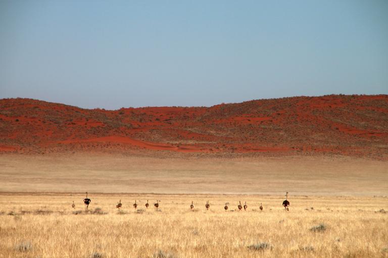 Keywords: ostriches wildlife wild animals namibia africa desert sky hills