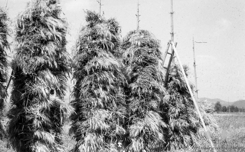 Keywords: Ostrnice z žitom (ječmen) in "zdeuna lojtra", na njivi med vasjo Vrhnika in Viševk 1962.jpg Ostrnice z žitom ječmen in zdeuna lojtra na njivi med vasjo Vrhnika in Viševk susenje-pridelkov/f0000019061 1962-08 creator Fanči Šarf watermark PD-Slovenia 1962 in Slovenia Vrhnika pri Ložu Barley in Slovenia Photographs by Fanči Šarf Hay drying poles in Slovenia |