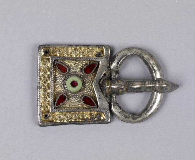 | Keywords: Ostrogothic - Belt Buckle - Walters 57661, 57664.jpg This belt buckle was found together with a bow fibula Walters 57 665 and some glass beads in 1876 at Nagy-Várad Hungary Oradea Romania The square plate of the buckle is framed by carved scrolls bordering a dotted field inlaid with four leaf-shaped garnets radiating around a circular central setting of garnet and green paste century 5 Early Medieval silver gilt garnets glass paste Overall cm 5 7 10 3 2 3 accession number 57 661 57 664 78179 Found in Nagy-Várad Grosswardein Hungary now Oradea Romania 1876 A Bolonyi Jr date and mode of acquisition unknown Nagy-Várad Museum Oradea Romania c 1876 by gift Henry Walters Baltimore by purchase Walters Art Museum Henry Walters Acquired by Henry Walters place of origin southwest Russia Walters Art Museum license Medieval metalwork in the Walters Art Museum Jewellery in the Walters Art Museum Ostrogothic belt buckles Media contributed by the Walters Art Museum needs category review Oradea Romania in the 5th century Ostrogothic jewellery in Romania |