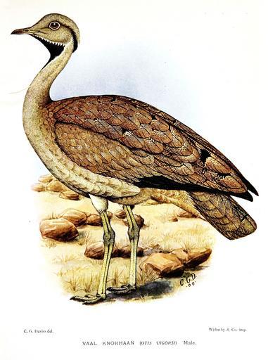 Keywords: OtisVigorsiDavies.jpg Eupodotis vigorsii http //archive org/stream/cu31924001576226 page/n44/mode/1up Horsbrugh Boyd 1912 The game-birds and water-fowl of South Africa/ Witherby Co London 1912 Creator Claude Gibney Finch-Davies PD-old-auto-1923 1920 Eupodotis vigorsii Claude Gibney Finch-Davies The game-birds and water-fowl of South Africa 1912 |