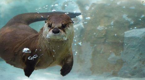 Keywords: otter underwater mammal swim playful cute zoo fun playing water diving
