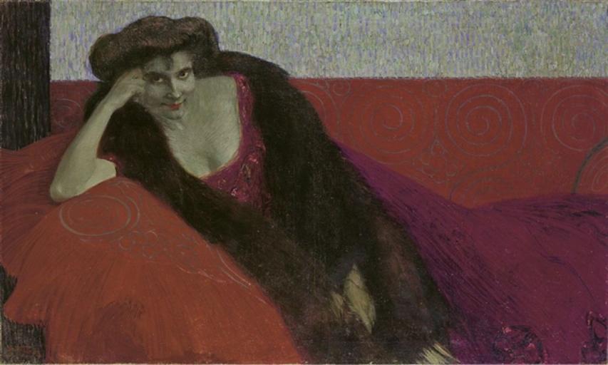 | Keywords: Otto Friedrich - Dame in Roth.jpg Dame in Roth oil on canvas in 34 5 57 5 own Private collection Schweiz 1909 Otto Friedrich 1862-1937 seit 1 1 2008 gemeinfrei Ursprünglich von Benutzer S baumann auf de WP hochgeladen PD-old Otto Friedrich Portrait paintings of recumbent women |