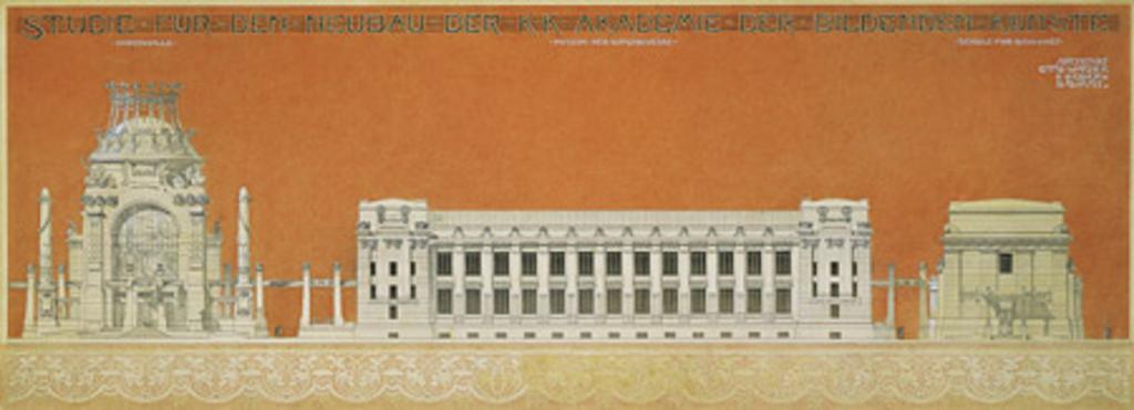 | Keywords: Otto Wagner 003.jpg Lateral View of Memorial Hall Museum of Plaster Casts and School for Architecture at the Academy of Fine Arts Pencil watercolor and zinc white 29 8 x 81 5 cm Historisches Museum der Stadt Wien Vienna http //www clarkart edu/exhibitions/klimt/wagner/bio cfm 1898 Otto Wagner pd-art Otto Wagner concepts Paintings in the Wien Museum Proposed or planned buildings and structures in Austria | ||||