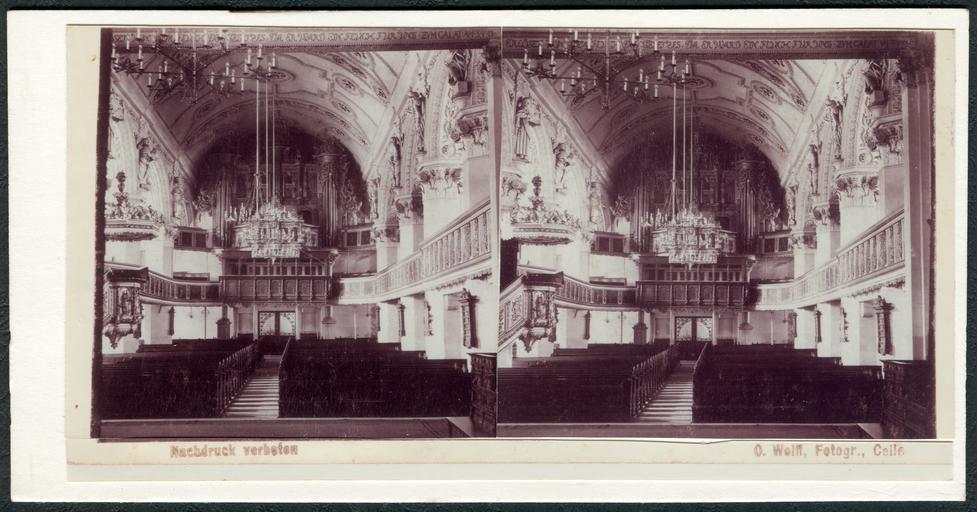 | Keywords: Otto Wolff Stereoskopie, Celle, Stadtkirche Westseite 1912, Bildseite Kopie.jpg Bildseite der 1912 von dem Celler Fotografen Otto Wolff gefertigten Aufnahme aus der Stadtkirche St Marien in Celle Diese handgefertigte Kopie einer Stereoskopie rückseitig handschriftlich betitelt Stadtkirche Celle Westseite 1912 zeigt eine seinerzeitige Ansicht mit Blick in Richtung der Orgel und des Haupteinganges der Kirche Das Bilddokument wurde freundlicherweise von Ilse Paul zur Verfügung gestellt um es als Digitalisat allen Menschen nachhaltig zur Verfügung zu stellen Scan einer vom Original angefertigten Replik Bernd Schwabe in Hannover 2013-10-15 08 55 57 Otto Wolff PD-old Documents by Ilse Paul Otto Wolff photographer Interiors of Stadtkirche St Marien Celle 1912 in Lower Saxony Stereo cards of Celle |