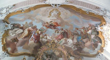| Keywords: Ottobeuren Hochaltarfresko Apokalyptisches Lamm.jpg Ottobeuren Basilika St Alexander und Theodor Hochaltarfresko Apokalyptisches Lamm von Johann Jakob Zeiller 1756 F 4 Die sieben Siegel werden vor den 24 Ältesten vom Buch des unschuldig geschlachteten Lamms entfernt own own photograph 2007-09 Creator Johann Jakob Zeiller Photo Andreas Praefcke Own work all rights released Public domain Baroque frescos in Basilika Ottobeuren Book with seven seals 1756 frescos in Germany Johann Jakob Zeiller Photos by User AndreasPraefcke |