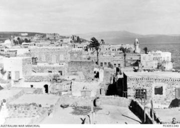 | Keywords: Ottoman Empire. Palestine, North Palestine, Lake Tiberias, Tiberias.P03093.040.JPG en Ottoman Empire Palestine North Palestine Lake Tiberias Tiberias The lakeside town of Tiberias This view taken from to the southern end looking north shows the roof tops of houses near the shore Palm trees protrude over the roofs from town gardens and the minaret can be seen to the right The ruins of a castle in the background are a stark contrast to the local architecture Tiberias is nestled on the western shore of Lake Tiberias or Lake Galilee and was founded in the 18th century by Herod Antipas who named it after the Emperor of Rome Tiberias In 1837 an earthquake destroyed sections of the city wall In recent times Tiberias has grown outside the city walls and along the shore One of a series of photographs showing local people and the activities of German and Turkish soldiers The photographs are believed to have been purchased by Australian soldiers whilst serving in Egypt and Palestine during the First World War Tiberias - 1914 1918 P03093 040 author PD-AustraliaGov PD-Ottoman Empire Historical images of Tiberias Black and white photographs Tiberias in the 1910s |