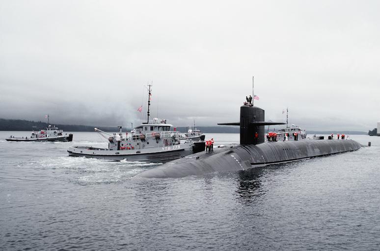 Keywords: Ottumwa (YTB-761).jpg en Ottumwa YTB-761 and Manhattan YTB-779 assist in the docking of the nuclear-powered strategic missile submarine Ohio SSBN-726 at Delta Pier Naval Submarine Base Bangor WA DVIC photo DN-ST-83-00540 by PH1 Harold Gerwien USN http //www navsource org/archives/14/09761 htm PH1 Harold Gerwien USN PD-USGov-Military-Navy Warships at Naval Base Kitsap USS Ohio SSGN-726 USS Ottumwa YTB-761 USS Manhattan YTB-779 Tugboats with submarines