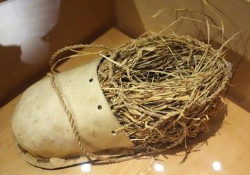 | View Original: | Ötzi shoe (replica), bearskin with deerskin upper, internal cage of twined linden bark, padded grass insulation - Bata Shoe Museum - DSC00004.JPG (4422x3112) | |||