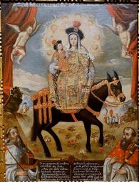 | Keywords: Our Lady of Mercy, called 'The Pilgrim', artist unknown, Cuzco, Peru, 1730s, oil on canvas - Blanton Museum of Art - Austin, Texas - DSC08156.jpg en Exhibit in the Blanton Museum of Art - Austin Texas USA This work is old enough so that it is in the public domain 2015-11-15 16 41 58 own Daderot other versions PD-old-100 cc-zero Cuzco School paintings in the Blanton Museum of Art | ||||