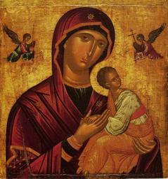 | Keywords: Our Lady of Perpetual Help by Andreas Ritzos's school (15th c., Pushkin museum).jpg Богомате ь Ст астная Госуда ственный музей изоб азительных искусств им А С Пушкина осква Рестав ация домузейная В 1981 г повто но естав и ована в Госуда ственном музее Изоб азительных Искусств им А С Пушкина естав ато В Зиновьева Сох анность доска об езана и надставлена све ху снизу и слева ижняя часть изоб ажения ут ачена ут аты левкаса и к асочного слоя т ещины тони овки адпись почти полностью смыта остатки её не читаются Разме 55 x 51 см Ж-4268 Данный иконог афический тип Ст астной иконы Богомате и с ангелами де жащими о удия ст астей и пове нувшимся к ним ладенцем получил ши окое асп ост анение именно благода я Анд еасу Рицосу кото ый использовал иконог афический извод известный уже с XII века но едкий для византийского искусства Икона выдающегося масте ства Изысканный художественный язык основан на академическом следовании поздневизантийской т адиции Использован богатейший а сенал п иемов плавкое личное письмо с под умянкой тонкие каллиг афические света ст укту ность азделки одеяний Стиль заметно итальянизи ован что п оявилось в сглаженности пове хностей жестком исунке изяществе поз звонком холодном коло ите Тип лика с ши окими щеками т актовка дугооб азных б овей глаз ук с длинными пальцами близки об азам Анд еаса Рицоса ум около 1492 г одели овка фо м элементы светотени геомет ичность д апи овок также соответствуют индивидуальной мане е художника Ат ибуция В Э а ковой Госуда ственный музей Изоб азительных Искусств им А С Пушкина 1982 Анд еас Рицос се едина XVI века Попытка п иписать икону к угу Анд еаса Рицоса п едставляется п авдоподобной Им была создана се ия знаменитых Ст астных икон Богомате и в кото ую входят как подписные п оизведения так и п иписываемые масте у http //lib pstgu ru/icons/index2 php option com_content view article id 62095480 62095480 catid 3 2009-11-26-12-52-56 Itemid 5 pageres 1 File source<br> http //www arts-museum ru/data/fonds/europe_and_america/j/2001_3000/268_ricos_virgin_strastnaya/index php sea_val D1 81 D1 82 D1 80 D0 B0 D1 81 D1 82 D0 BD D0 B0 D1 8F Official page - Museum site Конец XV века К ит Andreas Ritzos's school Andreas Ritzos Files uploaded by Shakko from various sources Icons in the Pushkin Museum PD-old |