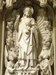 Keywords: Our Lord as the Everlasting Priest.JPG en One of Nathaniel Hitch's carvings on the reredos in Woodham Parish Church in Surrey own Weglinde Gordon Lawson Cc-zero Check categories 2011 August 26 Sculptures by Nathaniel Hitch