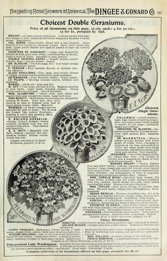 | Keywords: Our new guide to rose culture (16385864577).jpg ThELBadiniRnsEErawEKanfAmBKinfl TfieDIf JOEE SCONARD m <br> Choicest Double Geraniums <br> Price of all Geraniums on this page 15 cts each ; 4 for 50 cts <br> 10 for 1 postpaid by Hail <br> BRUANT A Giant among Geraniums A strong grower with mas- <br> sive trusses of rich vermilion-red which frequently measure 8 inches <br> across Magnificent <br> COL BARRE Semi-double dwarf and a free bloomer Large <br> flowers of 6 to 8 petals in immense trusses Color lower petals rosy <br> pink upper petals darker and marked scarlet at base an entirely <br> new color <br> COUNTESS DE HARCOURT Large and beautifully <br> formed flowers pure snow white ; extremely free in bloom ; <br> forms a bank of white Splendid in open ground <br> DOUBLE GENERAL GRANT Superb double scarlet <br> flowers ; large compact trusses Grand <br> DR BLANCHE Flowers large full; very bright orange <br> red ; exceedingly pretty <br> F PERKINS Rich carmine flowers of medium size; <br> very effective <br> GLADY SPAULDING Fine large semi-double flowers <br> of bright brilliant scarlet produced in great profusion <br> HETERANTHE Very desirable bedder ; bright scarlet <br> LE PI LOTE Glowing crimson scarlet brilliant and <br> beautiful <br> MARVEL Dark red; large and fine <br> M OTT Very large circular flowers Magenta shading <br> to pure violet upper petals blotched crimson Strong <br> grower and a free bloomer One of hundreds <br> MRS GLADSTONE Grand color pure white and <br> shaded flesh pink toward the centre large bold truss <br> PI N K BEAUTY Bold trusses of enormous size frequently <br> holding 60 florets ' Color rich deep pink <br> shading at base to brighter pink base of <br> upper petals creamy white Beautiful <br> ROSEBUD A dwarf compact grower <br> splendid for pots or boxes The flowers <br> are formed like perfect Rosebuds- <br> creating a novel and pleasing effect <br> Color scarlet shaded lilac <br> R ROLAN DGOSSELIN <br> Large round flowers; centre <br> chamois bordered with rose and <br> marked with white Very distinct <br> and beautiful <br> S A NUTT Beautiful rich <br> dark crimson ; perhaps the best ; <br> massive trusses ; blooms contin- <br> uously see cut <br> Complete collection of 16 Double <br> Geraniums postpaid for 1 50 <br> V4 <br> ’ ' Choicest <br> Single Gera- <br> niums <br> COLUMBIA Grand borderer ; <br> light high scarlet of dazzling bright- <br> ness ; two upper petals white shaded <br> to scarlet on the edges ; extremely <br> bhowy and brilliant <br> COUNTESS DE BLANCAS -Im- <br> mense single flowers 2 inches across ; <br> color light salmon pinii ; immense <br> triissBS <br> DR MAR MOTECK --Massive <br> trusses of large flowers with lower <br> petals of bright violet changing to <br> cannine at the base and marked in <br> winte ; the upper petals have white <br> extremities marbled and laced with <br> violet and carmine Verv beautiful <br> JACQUERIE One of the largest of flor- <br> ets; longer than wide; very velvety in <br> texture and a magnificent shade of very <br> dark crimson scarlet Bold <br> MADAME BRUANT Totally distinct <br> from any other variety; a strong vigorous grower and tree <br> bloomer ; large trusses and splendid flowers white veined <br> with carmine lilac The five petals regularly bordered with <br> bright solferino; the arrangement of color is exquisite <br> mingling and producing a striped effect Superb <br> MME CORALIE BAJAC Splendid large trusses; the <br> centre flower is white ; the five petals regularly bordered <br> with rosy carmine which shades into pale violet before <br> touching the white Blooms with grent freedom <br> MRS TAYLOR Dark green foliage of peculiar frag- <br> rance Flowers scarlet shaped like a Pelargonium freely <br> produced <br> NEGUS MENELIK Flowers of medium size but quite <br> circular and slightly reflexed ; creamy white shading into <br> a deep border of bright pink Good truss Very bright <br> PURITAN A round-flower variety; white ground shad- <br> ed salmon deepening to a distinct ring around the centre <br> TRIOMPHE DE NANCY Semi-double flowers carmine <br> red with white margins very effectively arranged large trusses <br> of immerse florets Thoroughly distinct; new and beautiful <br> VINCENNES Our finestsingle piuK variety Dwarf grower <br> and splendid bloomer Immense truss; long stems Superb <br> Complete set of 11 Sing'e Geraniums postpaid for 1 <br> Fancy Geraniums <br> ARBUTUS Golden-leaved variety bearing profuselv light salmon-pink flowers <br> GOLDEN REDDER - Crystal balls with golden leaves Extremely effective and <br> extra good ’ <br> ’ small and ofa clear green color; irregularly dotted with white <br> Fine for bordering and edging and splendid as a pot plant <br> see cut <br> MRS POLLOCK A bronze varietv of the best type <br> PRINCE BISMARCK A good dark bronze; one of the best <br> HAPPY THOUGHT Dark- green foliage having a light- <br> cream almost white centre ; dark baud about the light zone <br> MADAME SALLEROI One of the best of all Geraniums ; <br> beautiful and unique Strom and thrifcy ; a healthy grower <br> rarely reaching a height of more than 6 inches Leaves very <br> Complete set of 6 Fancy Geraniums postpaid for 60 cts <br> Pelargonium Ladv WashinstOn Beautiful flowers that are large and marked in the most charming fashion similar <br> Β° to Phloxes or Pansies ; color lilac pinlv with centre of pure carmine which gives <br> the flowers a most charming effect ; very showy- -0 cts each ; 3 for 50 cts ; 7 for 1 <br> Complete collection of 34 Geraniums oflfered on this page postpaid for S3 35 43875698 149643 77861 Page 111 Text http //www biodiversitylibrary org/page/43875698 1891 10 5962/bhl title 77861 Dingee Conard Co ; Henry G Gilbert Nursery and Seed Trade Catalog Collection NameFound Heteranthe NameFound Negus menelik NameFound Pelargonium NameConfirmed Pelargonium EOLID 11158713 NameBankID 1674593 NameFound Pelargonium NameConfirmed Pelargonium E