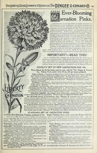 | Keywords: Our new guide to rose culture (16385452319).jpg is unnecessary Thomas W Lawson of Boston paid thirty <br> housand dollars 30 C00 for the original plants a price so fabulous as to be almost unbelievable <br> They are simply superb both in form aud color brilliant pink of immense size on long reed-like <br> stems they re the acme of perfection The stock is limited We offer it in plants secured direct <br> Irom the originator 40 cts each ; 2 for 75 cts Ready for delivery after J\Iarch 1 1900 <br> A Rival of the Lawson Carnation Ethel Crocker This magnificent variety has taken <br> first prize wherever exhibited It is sent out as absolutely the best pink Carnation ever offered <br> The flowers measure from 3 to 31 inches across ; stems long and one of the strongest growers and <br> free bloomers we bave ever seen Fragrance delicious Superb in everyway 35 cts each ; 3 for l <br> One Plant each of Mrs Thomas VV Lawson and Ethel Crocker for 65 cts postpaid <br> STANDARD SET OF CARNATION PINKS <br> 15 Choice Ever-blooming Varieties postpaid for 1 Single Varieties JO cts each any 6 for 50 cts ; J5for J <br> Here is an offer that 'stands for bigness and cheapness; from every standpoint it is an extraordinary offer The col- <br> lection embraces the best Carnations those whose merits have- made them popular favorites wherever Carnations are <br> grown We offer them at this extremely low price that their popularity may be further extended The plants are strong <br> well rooted and sure to grow and bloom No two varieties alike <br> El Dorado Deep golden yellow daintily penciled vs'ith <br> red ; the best of its color <br> Flora Hill The grandest white yariety to date A remark- <br> ably strong grower and an abundant and continuous bloom- <br> er ; flowers of enormous size and rounded build ; wonder- <br> fully free in bloom ; on fong stiff stems Has no disease <br> Golden Gate This is undoubtedly the finest pure yellow <br> Vigorous healthy grower ; blooms profusely all through the <br> season ; the color is pure golden yellow <br> Kitty Clover A fancy variety of light yellow marked with <br> carmine Large flowers one of the best <br> Louesa New offered for the first time ; a grand flower very <br> large White prettily marked with red <br> Trilby A grand Scarlet- darker than Portia <br> Louis Haetel Fine large snow-white flowers; double <br> fringed Superb <br> Mrs Fisher A standard variety ; flowers are large finely <br> constructed purest white in color and produced in wonder- <br> ful profusion <br> Portia Brilliant scarlet ; full and double ; none better <br> Tidal Wave Very beautiful dwarf or low-growing variety ; <br> charming soft pink color <br> Thomas Cartledge Flowers large and full ; long stems ; <br> very free bloomer <br> TVm Scott A rich warm pink ; rated as one of the best <br> J r Warden Bright crimson flowers large and sweet <br> Rose Queen A brilliant pink-a Queen among Carnations <br> 4ÂŽ - Please Order as the ' ˘ Standard Set <br> SPECIAL OFFER The Novelty Set named above five varieties and any 7 in ˘ Standard Set purchaser 9 <br> selection 13 in all postpaid by Mail for 1 1 <br> All the Carnations offered on this page 33 in all including Mrs Thomas W Lawson and Ethel Crocker <br> postpaid for 3 43875662 149643 77861 Page 75 Text http //www biodiversitylibrary org/page/43875662 1891 10 5962/bhl title 77861 Dingee Conard Co ; Henry G Gilbert Nursery and Seed Trade Catalog Collection NameFound Cardinalis NameConfirmed Cardinalis EOLID 19590 NameBankID 2473276 NameFound Portia NameConfirmed Portia EOLID 114428 NameBankID 4307847 Biodiversity Heritage Library Our new guide to rose culture 1900 Garden Stories Catalogs Dingee Conard Co Flowers Nurseries Horticulture Nursery stock Seeds Trade catalogs U S Department of Agriculture National Agricultural Library bhl page 43875662 dc identifier http //biodiversitylibrary org/page/43875662 bhlGardenStories Carnation BHLinbloom dingee conard co nurseries horticulture u s department of agriculture national agricultural library bhlgardenstories bhlinbloom Information field Flickr posted date ISOdate 2015-02-18 Check categories 2015 August 24 CC-BY-2 0 BioDivLibrary https //flickr com/photos/61021753 N02/16385452319 2015-08-24 02 52 35 cc-by-2 0 PD-old-70-1923 Our new guide to rose culture 1891 Photos uploaded from Flickr by FĂŚ using a script |