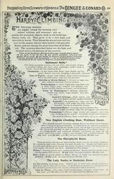 | Keywords: Our new guide to rose culture (16385798817).jpg ThEleadin RnsEErawei'snfAmEnDa TfieDIfiJGEE SC0NARD 6 es <br> HE following varieties <br> are highly valued for training over <br> arbors trellises and verandas ; also as <br> screens for unsightly objects such as old buildings <br> fences walls etc They grow lo to 12 feet high and <br> are entirely hardy They bloom the second year and but <br> once in the season but are then loaded with splendid <br> Roses and are among the most beautiful of all flow- <br> ers The varieties described below are the best and <br> succeed well in all sections of the country <br> Price of all the Koses oflfered on this page except where noted <br> 10 cts each; 6 for 50 cts ; 1 per dozen postpaid; two-year-old <br> plants 30 cts each; 8S3 per dozen by Express at purchaser's expense <br> Varieties marked with an asterisk can be furnished in five-year- <br> old plants at 60 cts each by Express at purchaser's expense <br> Baltimore Belle <br> Pale blush variegated carmine rose and white ; very double ; flowers <br> n beautiful clusters the whole plant appearing a perfect mass of <br> tloom ; one of the best climbing Roses <br> Champney A fine hardy pillar Rose ; quite double and fra- <br> grant ; flowers deep rose changing to clear pink ; desirable <br> Gem of Prairie Bright violet crimson ; large double and fragrant <br> This is the true variety ; very rare and desirable <br> y Greville or Seven Sisters Flowers in large clus- <br> ters; varies in color from white to crimson <br> Prairie Queen Clear bright pink sometimes with <br> a white stripe; large compact and globular very <br> double and full; blooms in clusters; one of the finest <br> Pride of Washing-ton Brilliant amaranth <br> shaded rose centre ; large clusters ; very dou- <br> ble ; fine <br> Russell's Cottag-e Dark velvety crim- <br> son ; very double and full ; profuse bloomer - <br> Superba A splendid sort; large very full <br> and double; color bright rosy pink clear and <br> beautiful; blooms in continuous clusters <br> Tennessee Belle A strong vigorous climber ; free <br> bloomer; bright rosy blush ; large full and fragrant ; one of the best <br> Triumphant Flowers large double and compact ; color deep <br> rose changing to pale carmine ; beautifully shaded and variegated <br> The set of 10 Climbing Roses named above for 75 cts postpaid <br> New English Climbing Rose Waltham Queen <br> 'W <br> I <br> This splendid new ever-blooming climbing Rose is introduced from England <br> where it has given great satisfaction It is believed to be a valuable acquisition <br> particularly for the South and Pacific Coast and though not entirely hardy in <br> the North will probably do well in many situations in the Middle States It <br> is a strong grower and continuous bloomer; the flowers are large full and <br> sweet; color rich scarlety crimson very beautiful and a profuse bloomer 15 <br> Cts each ; 4 for 50 cts ; 9 for 1 ; two-year-old plants 30 cts each <br> The Microphylla Roses <br> These are hardy and vigorous semi-climbing Roses and are extremely satisfactory <br> for cemeteries rock work covering old walls mounds etc Strong and bushy grow- <br> ers with small glossy green foliage and nearly evergreen in habit; the flowers are en- <br> tirely double very pretty and sweet Splendid for Rose hedges <br> White A strong grower and a continuous bloomer ; flowers perfectly double sweet <br> and the purest white in color 15 cts each; two-year-old plants 30 cts each <br> Red Habit of growth similar to White; flowers of bright red produced in great <br> profusion 15 cts each; two-year-old plants 30 cts each <br> The Lady Banks or Banksian Roses <br> Are fine climbing or trailing Roses Require two or three years' growth to bloom to <br> perfection and are then very beautiful As the flowers are produced on the old growth <br> they should be pruned very little merely cutting away what is necessary <br> Alba or White Pure white Violet-scented flowers ; beautiful perfect form 15 <br> cts each ; 4 for 50 CtS ; 9 for 1 ; two-year-old plants 30 CtS each 43875650 149643 77861 Page 63 Text http //www biodiversitylibrary org/page/43875650 1891 10 5962/bhl title 77861 Dingee Conard Co ; Henry G Gilbert Nursery and Seed Trade Catalog Collection NameFound Microphylla NameConfirmed Microphylla NameBankID 4242866 NameFound Superba NameConfirmed SUPERBA NameBankID 5322983 Biodiversity Heritage Library Our new guide to rose culture 1900 Garden Stories Catalogs Dingee Conard Co Flowers Nurseries Horticulture Nursery stock Roses Seeds Trade catalogs U S Department of Agriculture National Agricultural Library bhl page 43875650 dc identifier http //biodiversitylibrary org/page/43875650 bhlGardenStories Baltimore Belle Waltham Queen BHLinbloom dingee conard co nurseries horticulture u s department of agriculture national agricultural library bhlgardenstories baltimore belle waltham queen bhlinbloom Information field Flickr posted date ISOdate 2015-02-18 Check categories 2015 August 24 CC-BY-2 0 BioDivLibrary https //flickr com/photos/61021753 N02/16385798817 2015-08-24 03 51 50 cc-by-2 0 PD-old-70-1923 Our new guide to rose culture 1891 Photos uploaded from Flickr by FĂŚ using a script |