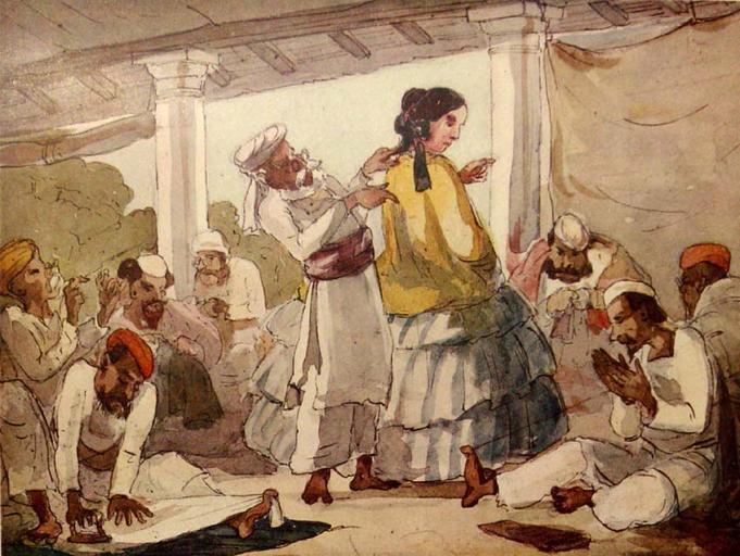 | Keywords: Ourcolonelswife.jpg en Our Station from 'Curry and Rice on Forty Plates or The Ingredients of Social Life at Our Station in India by Captn Geo F Atkinson'; the frontispiece ; a list of the contents A series of colored prints depicting British colonial life in a small North Indian station drawn by George Franklin Atkinson 1822-1859 and published in 1858 with later reprints The images below sometimes cut off small bits of the edges of the originals Our Agriculturalists Our Ball Our Band Our Bath Our Bazar Our Bedroom Our Burra Khanah Our Cloth Merchant Our Coffee Shop Our Colonel Our Colonel's Wife Our Cook Room Our Departure for Home Our Doctor Our Doctor's Wife Our Farm Yard Our Garden Our Invalid Major Our Joint Magistrate Our Judge Our Judge's Wife Our Magistrate Our Magistrate's Wife Our Mall Our Missionary Our Moonshee Our Nuwab Our Pack of Hounds Our Padre Our Pig Sticking Our Race Course Our Sporting Griff Our Stage Coaching Our Theatricals Our Tiger-Shooting Our Travellers' Bungalow Our Wedding Source ebay Oct 2004 1822-1859 and published in 1858 with later reprints http //www columbia edu/itc/mealac/pritchett/00routesdata/1800_1899/dailylife_drawings/ourstation/ourstation html George Franklin Atkinson 1822-1859 PD-Art Uploaded with UploadWizard George Francklin Atkinson 'Curry and Rice on Forty Plates or The Ingredients of Social Life at Our Station in India' London John B Day 1858 |