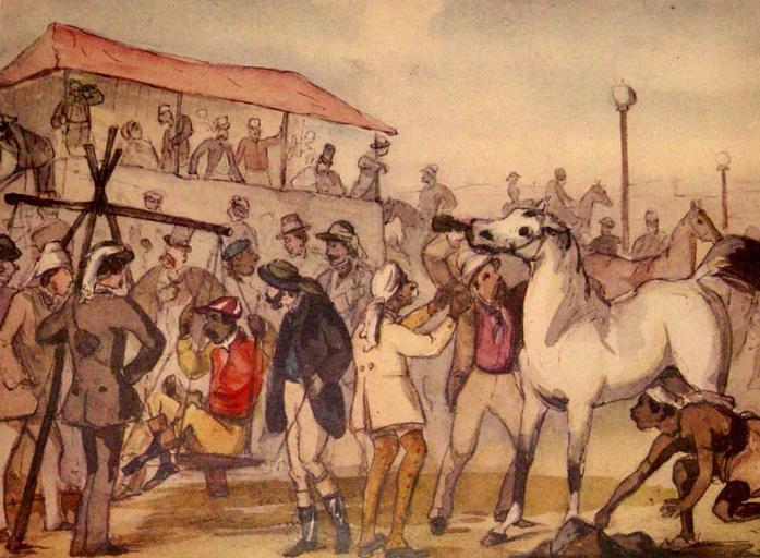| Keywords: Ourracecourse.jpg en Our Station from 'Curry and Rice on Forty Plates or The Ingredients of Social Life at Our Station in India by Captn Geo F Atkinson'; the frontispiece ; a list of the contents A series of colored prints depicting British colonial life in a small North Indian station drawn by George Franklin Atkinson 1822-1859 and published in 1858 with later reprints The images below sometimes cut off small bits of the edges of the originals Our Agriculturalists Our Ball Our Band Our Bath Our Bazar Our Bedroom Our Burra Khanah Our Cloth Merchant Our Coffee Shop Our Colonel Our Colonel's Wife Our Cook Room Our Departure for Home Our Doctor Our Doctor's Wife Our Farm Yard Our Garden Our Invalid Major Our Joint Magistrate Our Judge Our Judge's Wife Our Magistrate Our Magistrate's Wife Our Mall Our Missionary Our Moonshee Our Nuwab Our Pack of Hounds Our Padre Our Pig Sticking Our Race Course Our Sporting Griff Our Stage Coaching Our Theatricals Our Tiger-Shooting Our Travellers' Bungalow Our Wedding Source ebay Oct 2004 1822-1859 and published in 1858 with later reprints http //www columbia edu/itc/mealac/pritchett/00routesdata/1800_1899/dailylife_drawings/ourstation/ourstation html George Franklin Atkinson 1822-1859 PD-Art Uploaded with UploadWizard George Francklin Atkinson 'Curry and Rice on Forty Plates or The Ingredients of Social Life at Our Station in India' London John B Day 1858 |