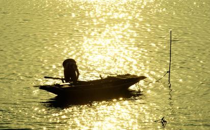 Keywords: outdoor water the boat catching fish sunset gold the afternoon vietnam