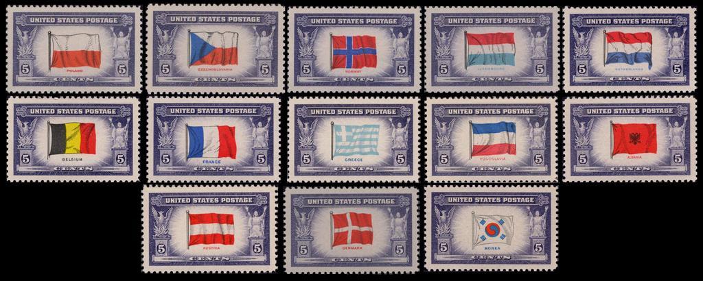 Keywords: Overrun countries stamp.png 1943-1944 United States postage of Overrun Countries - Poland Czechoslovakia Norway Luxembourg the Netherlands Belgium France Greece Yugoslavia Albania Austria Denmark and Korea The stamps with flags of European countries were released at intervals from June to December 1943 while the Korea flag stamp was released in November 1944 own 2009-01-03 USPS PD-STAMP File Overrun countries Korea flag stamp png PD-USGov Stamps of the United States 1941-1950 1943 stamps 1944 stamps Multiple national flags on stamps |