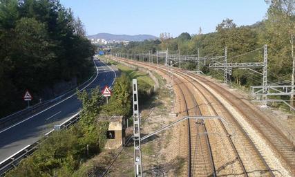 Keywords: oviedo asturias spain train railway the road street lead to train tracks urban travel