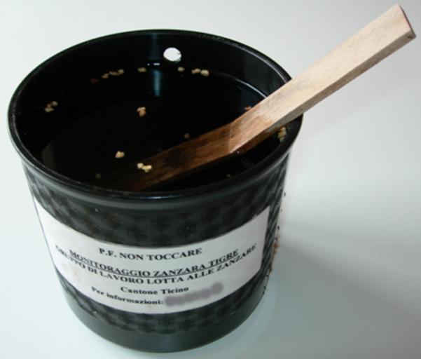 Keywords: Ovitrap-Ticino.jpg tiger mosquitoes In this case an ovitrap type used for the monitoring of the Asian Tiger mosquito Aedes albopictus in the Swiss canton of Ticino The presence of the mosquitoes is detected through the eggs they lay on the wooden paddle or from larvae that hatch from these eggs in the laboratory The brown granules in the water are a Bacillus thuringiensis israelensis preparation that will kill mosquito larvae that hatch in the ovitrap Ovitraps are also used to monitor the yellow fever mosquito Aedes aegypti Tigermücken Hier eine Ovitrap wie sie bei der à berwachung der Asiatischen Tigermücke Aedes albopictus im schweizerischen Kanton Tessin verwendet wird Die Anwesenheit der Stechmücken wird über die Eier festgestellt die sie auf das hölzerne Brettchen legen oder über Larven die man im Labor aus den Eiern schlüpfen lässt Die braunen Körnchen sind ein Bacillus thuringiensis israelensis-Präparat das die Mückenlarven abtötet die in der Ovitrap schlüpfen Ovitraps werden auch verwendet um die Gelbfiebermücke Aedes aegypti zu überwachen mosquits tigre Aquà hi ha un Ovitrap el qual es fa servir per a la supervisió del mosquit tigre asià tic Aedes albopictus al cantó de Tesin a Suïssa La presència del mosquit tigre es detecta a través dels seus ous que les femelles posen a sobre la fusta o es detecta amb l'ajuda de larves que es fan néixer al laboratori Els granets marrons a l'aigua són una preparació de Bacillus thuringiensis israelensis que maten les larves del mosquit que naixen a dintre de l'Ovitrap Trampes Ovitrap també es fan servir per a controlar el mosquit que transmet la febre groga Aedes aegypti moustique-tigre L'exemplaire photographié est utilisé pour surveiller le moustique-tigre asiatique Aedes albopictus dans le canton suisse du Tessin La présence des moustiques est détectée lorsque des oeufs sont déposés sur la planchette en bois ou lorsque des larves éclosent de ces oeufs en laboratoire Les granulés bruns dans l'eau sont une préparation de Bacillus thuringiensis israelensis destinée à tuer les larves qui éclosent dans le piège Ce type de piège est également utilisé pour surveiller le moustique de la fièvre jaune Aedes aegypti own 2008-03-04 Küchenkraut Aedes albopictus Aedes aegypti |