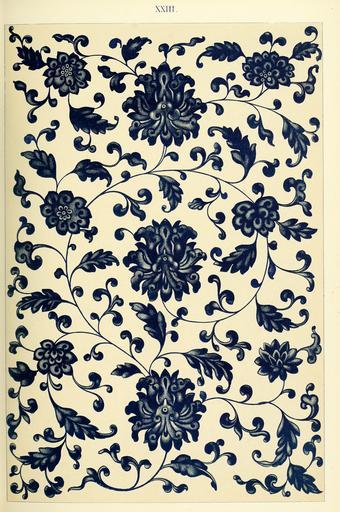 Keywords: Owen Jones - Examples of Chinese Ornament - 1867 - plate 023.png 022 XXIII 23 024 From a Bottle of blue and white china; a very fine example of symmetrical arrangement it is also interesting as showing the limit of shade and relief in the representation of flowers ”a limit which the Chinese constantly reach but never exceed PD-old-100-1923 Floral designs in China Floral patterns Blue and white porcelain Ceramic bottles |
