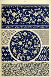 | Keywords: Owen Jones - Examples of Chinese Ornament - 1867 - plate 027.png 026 XXVII 27 028 From various objects in blue-and-white china The centre composition and the borders at the top of the plate are very Persian in character and arrangement PD-old-100-1923 Floral designs in China Floral patterns Blue and white porcelain Artistic geometric patterns | ||||