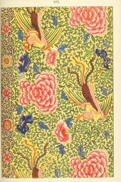 | Keywords: Owen Jones - Examples of Chinese Ornament - 1867 - plate 056.png 055 LVI 56 057 From a painted china Bottle In this composition the dragon-flies are arranged triangularly and crossed by the large flowers similarly arranged PD-old-100-1923 Porcelain of China Floral designs in China Floral patterns Ceramic bottles Animals in Chinese art |