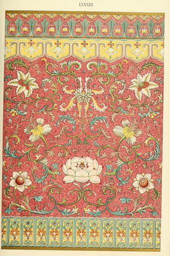 | Keywords: Owen Jones - Examples of Chinese Ornament - 1867 - plate 083.png 082 LXXXIII 83 084 From a painted china Vase Similar style to the last but more perfect; in the balance of the masses the embossed ground is formed of a continuous line of volutes PD-old-100-1923 Porcelain of China Vases of China Floral designs in China Floral patterns |