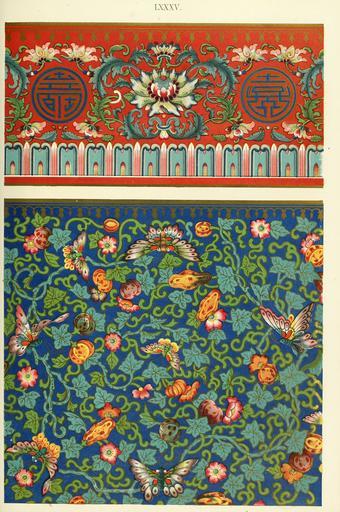| Keywords: Owen Jones - Examples of Chinese Ornament - 1867 - plate 085.png 084 LXXXV 85 086 From painted china The upper example is from a Basin; the lower is from a portion of a Vase PD-old-100-1923 Porcelain of China Vases of China Floral designs in China Floral patterns Butterflies in Chinese art |