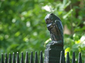 Keywords: Owl statue (Manchester Grammar School).jpg en MGS Owls keep a silent vigil from the School railings own Sallyannewilliamson Manchester Grammar School Statues of owls