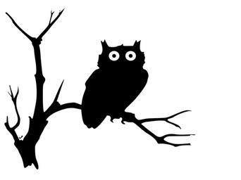 Keywords: owl twig branch night bird eyes silhouette