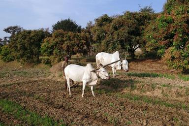 Keywords: ox plough farmer tilling furrowing india ox plough field bull plow farm mammal domestic outdoor farm animals rural livestock domestic animals farmland