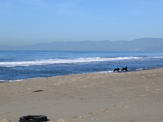 Keywords: oxnard beach dogs wave mountains distance ocean america clear sky nature blue
