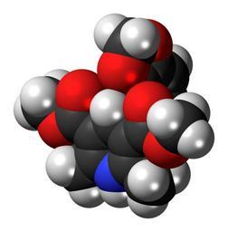 | Keywords: Oxodipine-3D-spacefill.png Space-filling model of the oxodipine molecule a calcium channel blocker Colour code 505050 Carbon C black<br> F0F0F0 Hydrogen H white<br> F51E1E Oxygen O red<br> 3C50FA Nitrogen N blue<br> 2011-06-13 own DS Visualizer Jynto talk Ball-and-stick version cc-zero Images by Jynto Oxodipine |