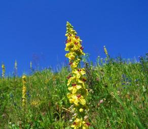 Keywords: oxtail weed yellow wild flowers colorful meadow blue sky