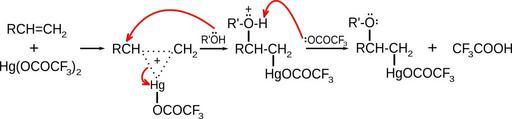 Keywords: Oxymercuration.svg en Alkoxy-mercuration el Αλκοξυ-υδραργύρωση own Xhmikos 2009-07-31 Oxymercuration reactions