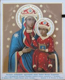 | Keywords: Ozerian Icon 1902 Odessa.JPG ru Истинное изоб ажение чудотво ной иконы Божией ате и Озе янския От СПб Духовнаго Цензу наго Комитета печатать дозволяется Ста ший Цензо А химанд ит Антонин Г ановский own photo / Реп одукция 1902 года типолитог афия Фесенко в Одессе Unk 17 сentury / 1902-02-19 PD-art-100 original icon PD-RusEmpire reproduction 1902 <gallery> Ozerian Icon 1902 JPG Ozerian Icon 1902 2 JPG File Озе янская икона Божьей мате и Ха ьков jpg </gallery> Ozerian Icon Fesenko icons Censorship in Russian Empire Eastern Orthodox art SPb 1902 Unidentified year in Kharkiv |