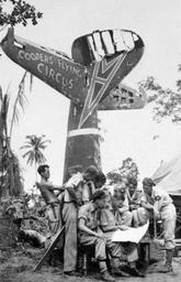 | Keywords: P00119.001CoopersFlyingCircus.jpg Sentani Dutch New Guinea 80 Squadron Coopers Flying Circus Pilot Officer Don Hillier front left and Squadron Leader Glen Cooper middle P00119 001 1944-07-31 Not stated PD-Australia the Government of Australia <small>Per the link above to the Australian government site where the image was found the Australian government considers this to be public domain worldwide http //www awm gov au/copyright/</small> World War II people of the Royal Australian Air Force Black and white photographs No 80 Squadron RAAF |